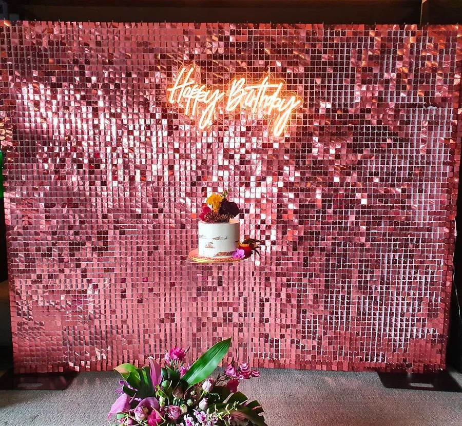 Our shimmer and sequin walls are available in a range of stunning colours — perfect as a photo backdrop or feature wall for any event.