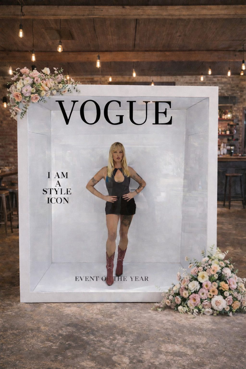 Your guests become the cover star. Our walk-in Vogue booth is a full immersive magazine experience — stunning branded overlays, professional lighting, and output that looks like a real magazine cover. Perfect for weddings, corporate events, galas and brand launches.